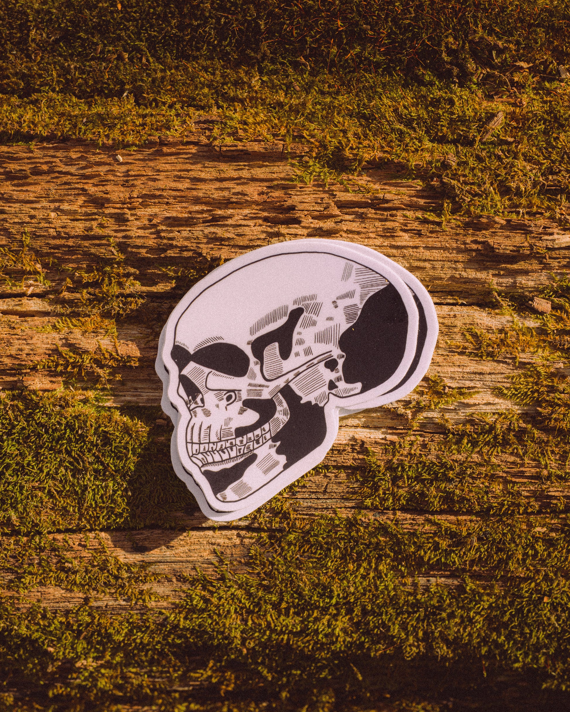 3 inch black and white linework skull sticker made to last with thick, scratch and water resistant vinyl. Dishwasher safe and ideal for laptops, water bottles, helmets, skis, snowboards, and more.
